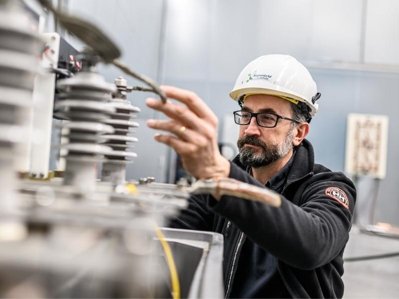 Pour valider les performances, nous nous appuyons sur les laboratoires d’essais diélectriques et de puissance de SuperGrid Institute. La plateforme de caractérisation nous permet de définir les propriétés des matériaux isolants.